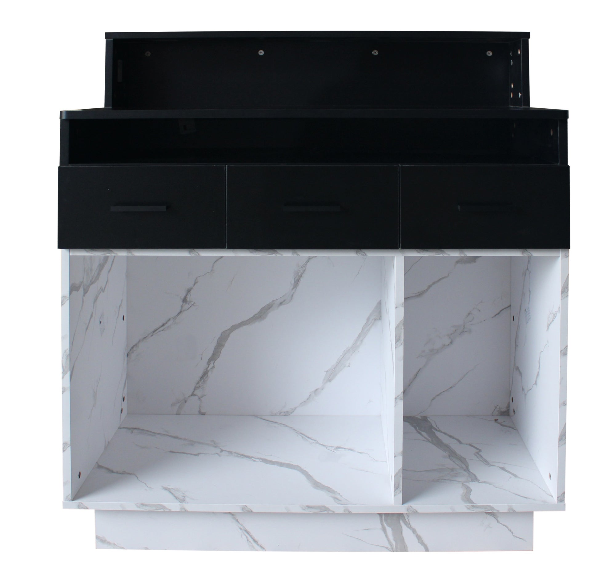 The Valencia Reception Desk features a masterfully crafted design, meticulously detailed to showcase its distinctive beauty. The bottom section showcases a marble-inspired finish, exuding a sense of grandeur and opulence. The rich veins of the faux marble texture add depth and character, elevating the desk's overall allure.